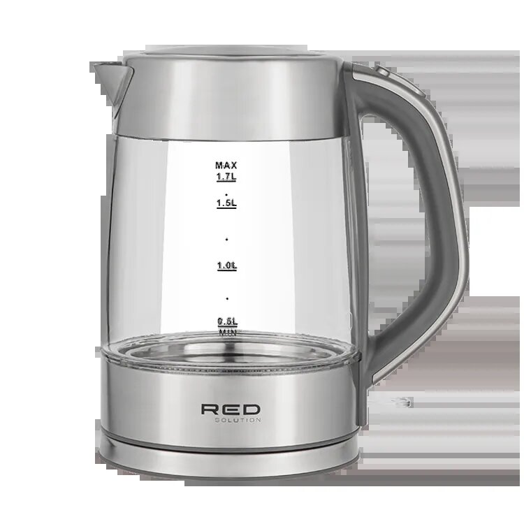 Чайник RED SOLUTION RK-G138 — это классический электрочайник с базовым набором функций. У него есть автоматическое отключение при закипании и при отсутствии воды, нагревательный элемент из нержавеющей стали и световая индикация работы.