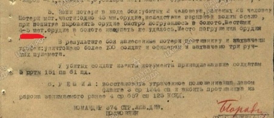 Работая с архивными документами, руководитель поискового клуба «Osting» Игорь Седунов наткнулся на любопытный рапорт времён Второй мировой войны. В нём сообщалось, что в районе Нарвы, в болоте, во время боя взрывной опрокинуло советскую пушку. Солдаты пытались нащупать её длинными шестами, но безуспешно. В документе даже был указан квадрат местности, где это произошло. Спустя десятилетия поисковикам предстояло проверить, действительно ли под слоем ила покоится артиллерийское орудие. Работы затянулись на три года. Район болота Кыргесоо оказался труднодоступным из-за чрезвычайно топкой местности. Квадрат был известен, поэтому было решено просканировать участок с помощью глубинного металлоискателя. С его помощью удалось зафиксировать крупный металлический объект. Водолаз клуба, Михаил Зенов, опустился в воду и на глубине около семи метров нащупал нечто массивное. Зацепив находку тросом, поисковики приступили к подъёму. Делали это зимой, когда болото промёрзло: во льду пропилили прорубь, с
