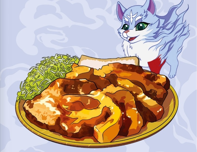 Свининой с имбирным соусом Мукода из аниме «Кулинарные скитания в параллельном мире» не только подкупил команду авантюристов, но и приманил легендарного волка‑Фенрира. Зверь проглотил угощение и решил заключить с героем контракт, чтобы вкусно есть три раза в день.