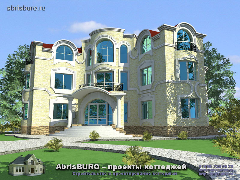 Проект красивого трехэтажного коттеджа К314-1000 большими окнами, балконом и пристроенным бассейном общей площадью 1000 квадратных метров в архитектурном бюро AbrisBURO. План цокольного этажа (Ground floor plan) План 1-го этажа дома (Plan of the first floor of the house) План 2-го этажа дома (Plan of the second floor of the house) План 3-го этажа дома (The plan of the third floor of the house) Фасады дома (Facades of the house) НАИМЕНОВАНИЕ ХАРАКТЕРИСТИКА Общая площадь: 1000 м2 Габариты коттеджа: 21,4 x 18,2 м Высота подвала (в чистоте): 2,8 м Высота 1 этажа (в чистоте): 3,3 м Высота 2 этажа (в чистоте): 3,0 м Высота 3 этажа (в чистоте): 3,0 м Фундаменты (варианты): Монолитная ж/б плита или блоки ФБС Несущие стены (варианты): Газобетонные блоки, теплая керамика или кирпич Перекрытия (варианты): Монолитные или сборные ж/б плиты Кровля (варианты): Металлочерепица или мягкая кровля (гибкая черепица) Возможность внесения изменений в проект: ДА Состав проекта: АР (архитектурные решения) Ст