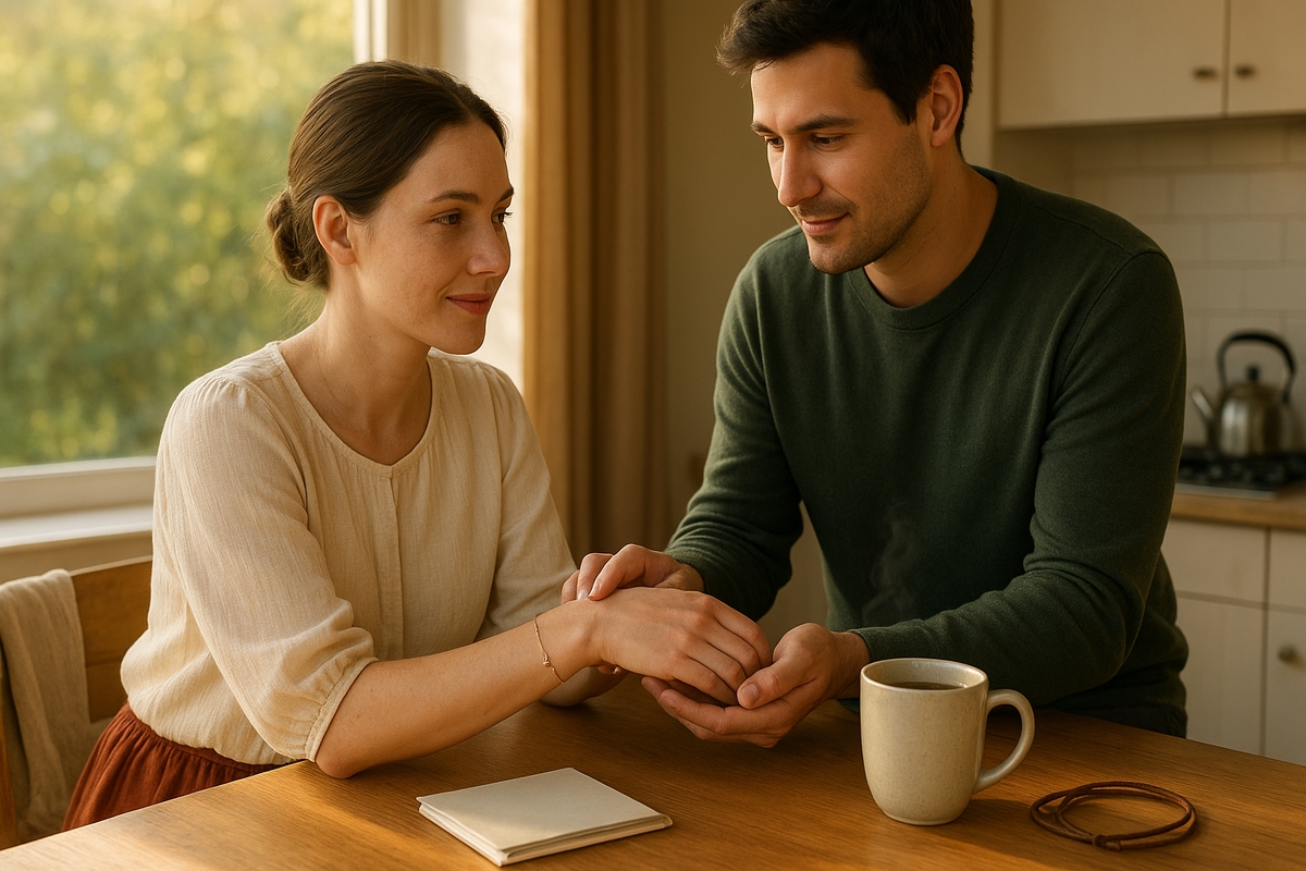 Когда она ушла, я достал из ящика тонкий кожаный шнурок, купленный когда‑то «просто так». Завязал простой двойной узел — честный, без хитростей — и положил рядом с её кружкой. Не вместо. Рядом. Чтобы помнить: благодарность не требует доказательств, она просто держит.