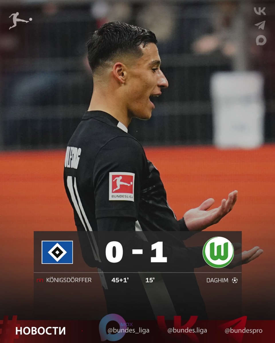 #Бундеслига ⚽️ 8 тур. «Гамбург» - «Вольфсбург» 0:1 ⚽️ 15' Адам Дагим (0:1) 🚫 45+1' Рансфорд-Йебоа Кёнигсдёрффер (пен.) «Вольфсбург» прервал шести матчевую серию без побед. «Волки» на выезде одолели «Гамбург». Автором единственного забитого мяча в этой игре стал Адам Дагим. ⚡️ Победа позволила «Вольфсбургу» набрать 8 очков и подняться на 12-е место в турнирной таблице. У «Гамбурга» тоже 8 баллов и 13-я строчка. ⭐️ MAX /// Видео+ ❤ Телеграм /// Аналитика+ ✅️ Флагманская /// Новости+