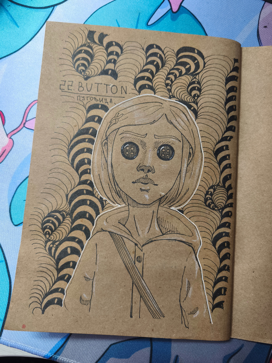 Сначала хотела нарисовать просто обычную пуговицу. Да, скучно, но идей не было. А потом другие художники напомнили мне про мультфильм "Коралина в стране кошмаров".