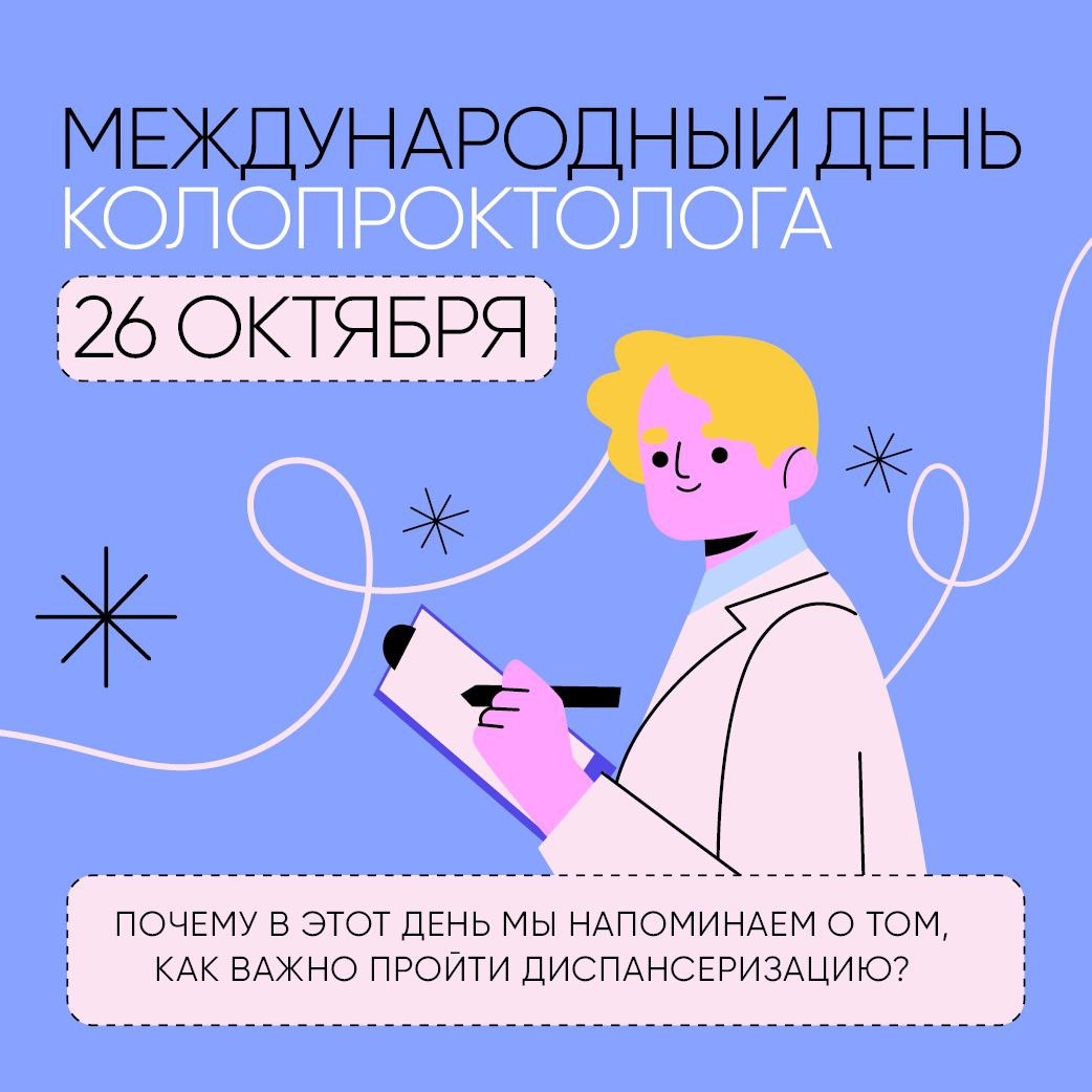 🩺 День колопроктолога: напоминаем о важном! Сегодня поздравляем врачей одной из самых важных, хоть и деликатных специальностей — колопроктологов! Эти специалисты ежедневно помогают тысячам пациентов сохранить здоровье и качество жизни. В наших карточках мы еще раз напоминаем, почему так важно проходить диспансеризацию и не откладывать визит к врачу