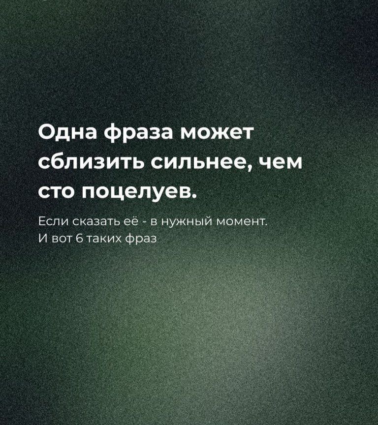 😌😚😌😉 ☺️☺️😉☺️😉 Всем доброго прекрасного дня, мои дорогие ☀️ Сегодня хочу поделиться тем, что всего одна фраза может сблизить 👩❤️💋👨 сильнее , чем сто поцелуев 🩷💋 1⃣ "Я не хочу выяснять кто прав. Я хочу быть рядом." В момент конфликта - не контроль, а связь. Эта фраза выключает оборону. Ты не атакуешь, ты остаёшься. 2⃣ "Не притворяйся сильным. Мне важнее - ты настоящий." Мужчинам чаще говорят "держись", чем "я рядом". А эта фраза даёт разрешение быть собой - и не сломаться внутри. 3⃣ "Я не гадаю по намёкам. Говори прямо. Даже, если это больно." Ты не просишь "быть милой (ым)". Ты просишь быть "честной (ым)". Потому что близость - это когда можно говорить вслух. 4⃣ "Я не твой противник. Я твой человек." Иногда человек уходит в себя - не потому, что не любит, а потому что не верит, что его поймут." Эта фраза - как сигнал, ты всё ещё рядом. 5⃣ "Мне не нужен герой. Мне нужен ты - живой, уставший, но настоящий." Не нужно быть лучшей версией себя. Достаточно быть собой