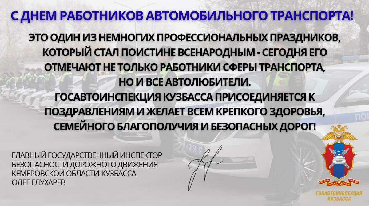 🚔 Сотрудники Госавтоинспекции Кузбасса поздравляют всех водителей с профессиональным праздником - Днём автомобилиста.