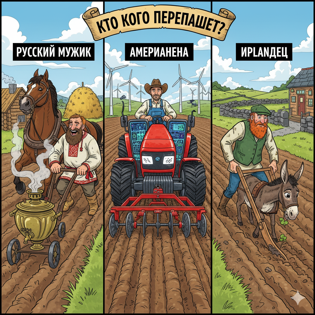 — Не будет, я картошку уже посадил. У него на участке живёт не просто лопата, а священный артефакт, передаваемый по наследству. И даже если мотор трактора заглох, он не позовёт сервис. Он прост