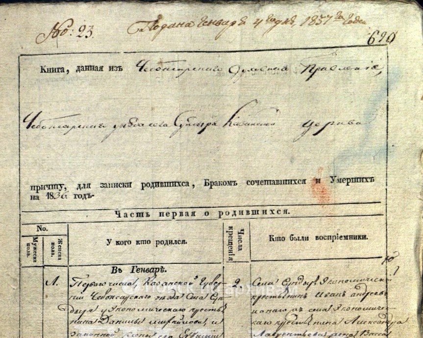 1836 год. Село Сундырь. Чебоксарский уезд. Готлиб Мария Яковлевна.