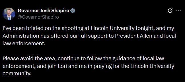 В ответ на пост Governor asks to 'pray for Lincoln University shooting' victims