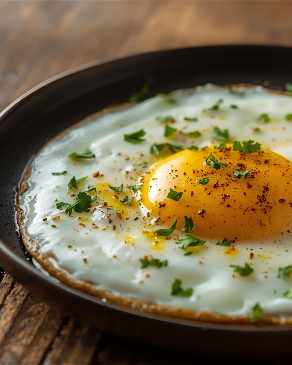 - Жарьте яйца до желаемой степени готовности желтка.