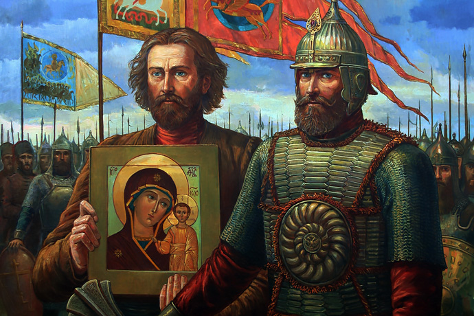 Если в XVI веке Казанская икона «освятила» завоевание, то в начале XVII века она, по сути, спасла само государство. К 1611 году Россия фактически перестала существовать. Смутное время достигло своей низшей точки: страна в руинах, в Кремле сидит польский гарнизон, бояре присягнули польскому королевичу Владиславу, по дорогам бродят разбойничьи шайки. Первое народное ополчение, собранное было для освобождения Москвы, бесславно развалилось, потому что его лидеры (Ляпунов, Трубецкой и Заруцкий) не смогли найти общий язык из-за власти и амбиций. Стране, разобщенной и деморализованной, нужен был не просто очередной воевода, а нечто большее — неоспоримый символ единства, знамя, под которым не стыдно умереть. Этим знаменем и стал список Казанской иконы. Когда казанское ополчение шло на соединение с Трубецким, оно несло с собой этот образ. Но казаки, как сообщает «Новый летописец», встретили святыню без должного почтения, и Первое ополчение потерпело крах. Весной 1612 года казанская дружина с иконой двинулась обратно домой, но по пути встретила новое, Нижегородское ополчение, которое вели купец Кузьма Минин и князь Дмитрий Пожарский. Эти двое были не только патриотами, но и великолепными практиками. Они понимали, что без «небесного покровителя» разношерстную массу ополченцев в бой не поднять. Икона, к тому времени уже прославившаяся чудесами, была взята в полки. Это был гениальный ход. Перед решающим штурмом Москвы 22 октября 1612 года князь Пожарский устроил трехдневный пост и общую молитву перед образом. Это был не просто религиозный ритуал, это был мощнейший акт для сплочения XVII века, объединивший армию общей верой. И оно сработало. Ополченцы, воодушевленные тем, что за них сама Богородица, взяли Китай-город. Деморализованные поляки, поняв, что их дело проиграно, вскоре сдали и Кремль. Икону-победительницу князь Пожарский поставил в своем приходском храме на Лубянке, а позже на свои средства выстроил для нее на Красной площади Казанский собор. Новые цари, Романовы, быстро оценили значимость этого. Царь Алексей Михайлович, у которого в 1648 году именно на 22 октября родился наследник Димитрий, немедленно воспользовался совпадением. В 1649 году он повелел установить общерусское празднование Казанской иконе «во всех городах по вся годы». Зачем? Это был дальновидный политический шаг: связать молодую династию Романовых с великой победой, положившей конец Смуте. «Мы — те, кого выбрала и благословила Богородица» — таков был недвусмысленный посыл. Так икона из боевого знамени превратилась в один из столпов государственной идеологии и покровительницу новой династии.