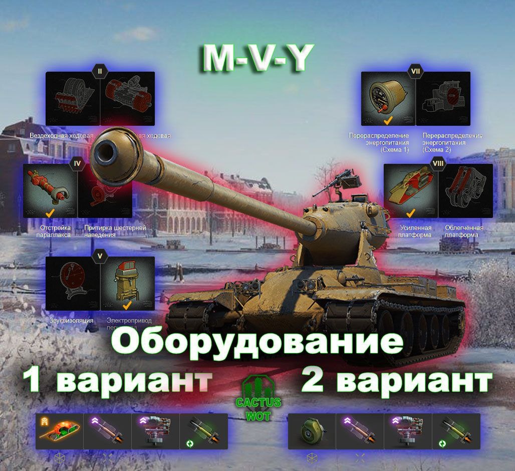 🇺🇸 M-V-Y 🉑Тяжелый танк прорыва 10 уровень. ⛏Оборудование и полевая модернизация на картинке🔼 ➕Плюсы танка механика "резервной гусеницы"; хорошее лобовое бронирование; отличные углы вертикальной наводки; выбор между двумя пушками. ➖Минусы танка слабое бронирование бортов и кормы. ⬇️⬇️⬇️⬇️⬇️⬇️⬇️⬇️ #базазнаний@CactusWOT #MVY@CactusWOT #миртанков