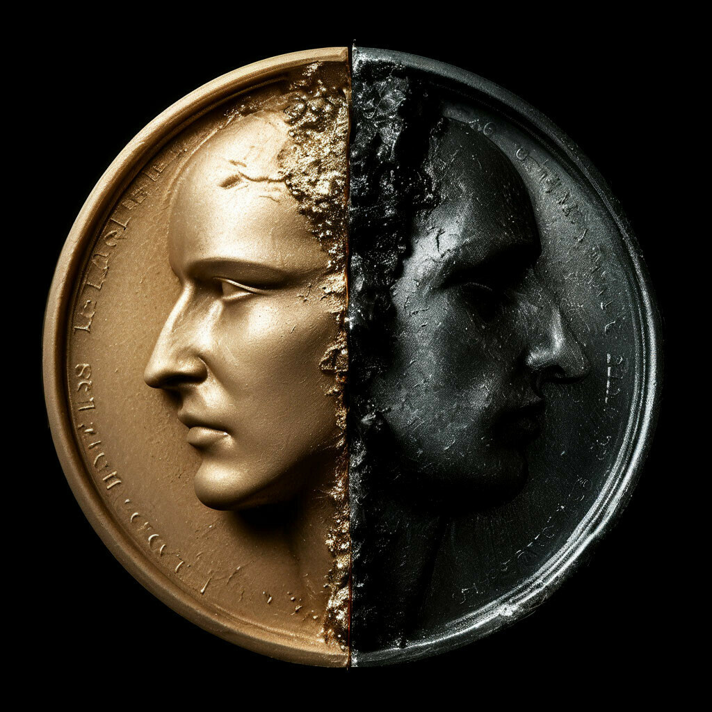 1 А вы готовы мир перевернуть? Не тот , где миллиарды проживают. Зайти в себя, подальше вглубь нырнуть, Врата увидеть ада или рая.. Кривых зеркал увидел столько ты, Гримасы неестественны, чужие , Хоть очертанья схожи на твои, Не принимает сердце формы злые. Припев Две стороны медали Это факт. Нам выбирать куда идти. И отделяет всех один лишь шаг , В себе осознанность взрастить. 2. Ты смотришь на себя И сей конфуз Обескуражил нежное Сознанье. Он рисовал прекрасных муз, А получились странные созданья. Как много масок в сундуках лежат, Из рода в род передавали нам. Драконы их усердно сторожат, Но я, пожалуй, рассоздам весь хлам. Припев Две стороны медали Это факт. Нам выбирать куда идти И отделяет всех один лишь шаг . В себе осознанность взрастить. 3. Проход увидел и шагнул вперед И слышал лишь дыхание своё , Быть может привели на эшафот? Ум прошептал спокойно и легко Ролей слепых исчезло колесо , Без драм, комедий начинаю жить, И благодарен всякому кино, Что научили просто так
