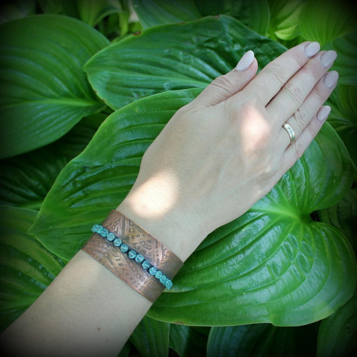 Медный браслет Небесная Архитектура, с апатитом