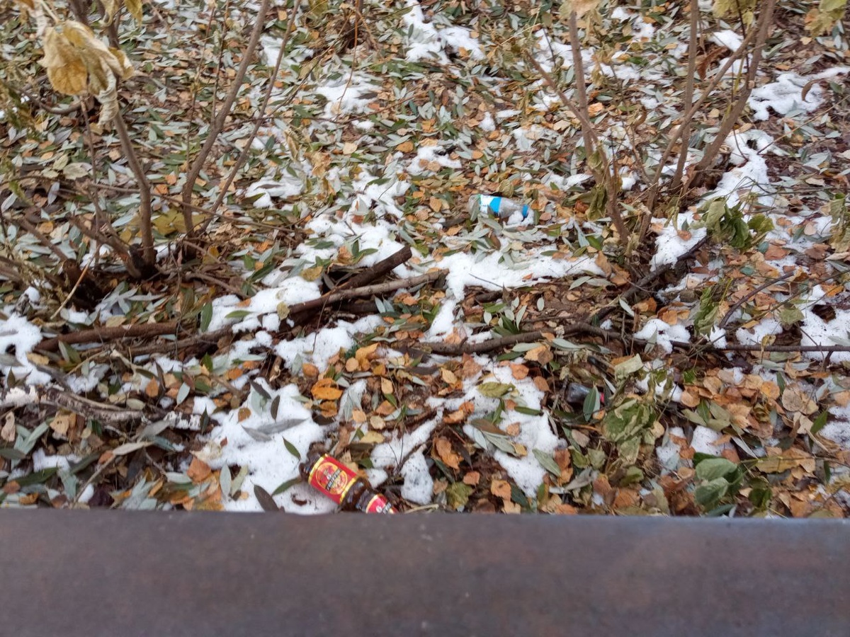 А это территория школы 61. Здесь нужен субботник. И высокий забор. Потому что ВЗРОСЛЫЕ через нынешний низкий забор просто закидывают мусор на территорию школы 😡