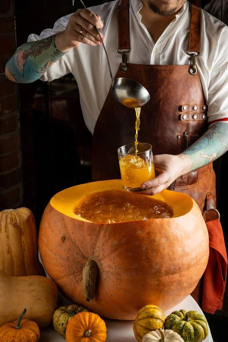 🎃31 октября с 18:00 в ресторане «КрабыКутабы» всех гостей будут угощать тыквенным пуншем от шеф-бармена Павла Зоткина. И разливать его будут из огромной тыквы. В основе — пюре из сладкой спелой тыквы, игристое, цитрусовый ликёр, коньяк и сироп корицы.
