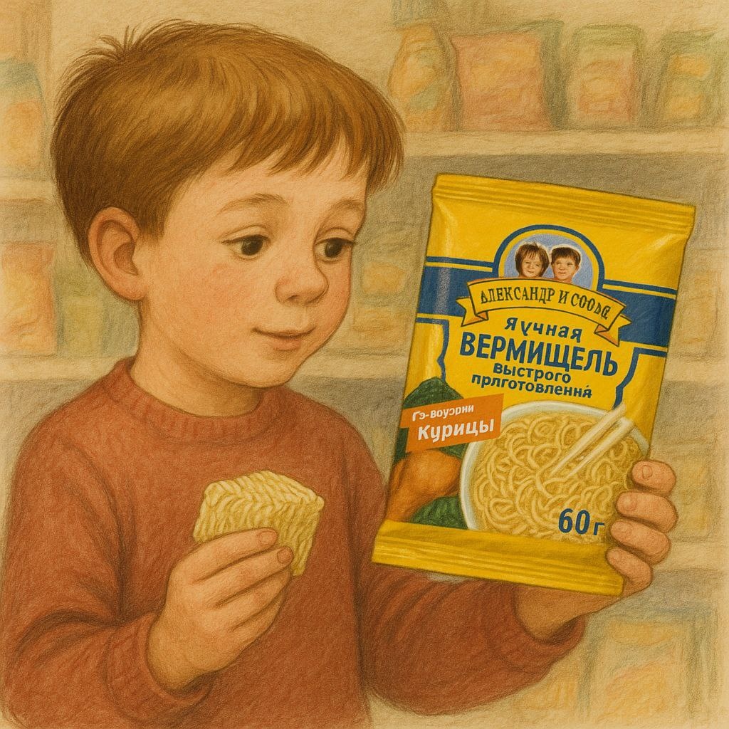 #ПростоТак: Чипсы моего детства Недавно в магазине увидел вот этого монстра. Долго не мог поверить глазам, потом долго сомневался — правильно ли перевёл инструкцию. Но теперь никаких сомнений: это лапша-снек. То есть буквально квадратик лапши в пакетике — добавь порошок со специями, перемешай и хрусти! Сразу нахлынуло столько воспоминаний. Помню, как приехал на очередные летние каникулы к бабушке в Казань, а у неё в буфете — новинка: лапша быстрого приготовления. В то время она только-только появлялась в магазинах. А может, и нет — но, во всяком случае, бабушка её раньше не покупала. Естественно, захотелось попробовать. Пока бабушка подогревала чайник, я высыпал содержимое пакетика в глубокую тарелку, добавил специи и выдавил масло. И так вкусно пахла эта химозная приправа, что я не выдержал — попробовал кусочек лапши с капелькой масла и налипшими специями. Как же это оказалось необычно и вкусно! Надо ли говорить, что ребёнку, которому некогда было сидеть на месте и который вороти