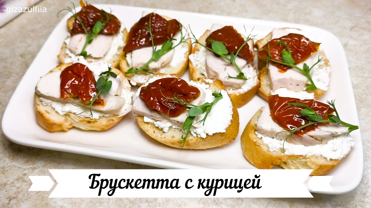 Брускетта с курицей и вялеными помидорами (фото пошагово + видеорецепт)