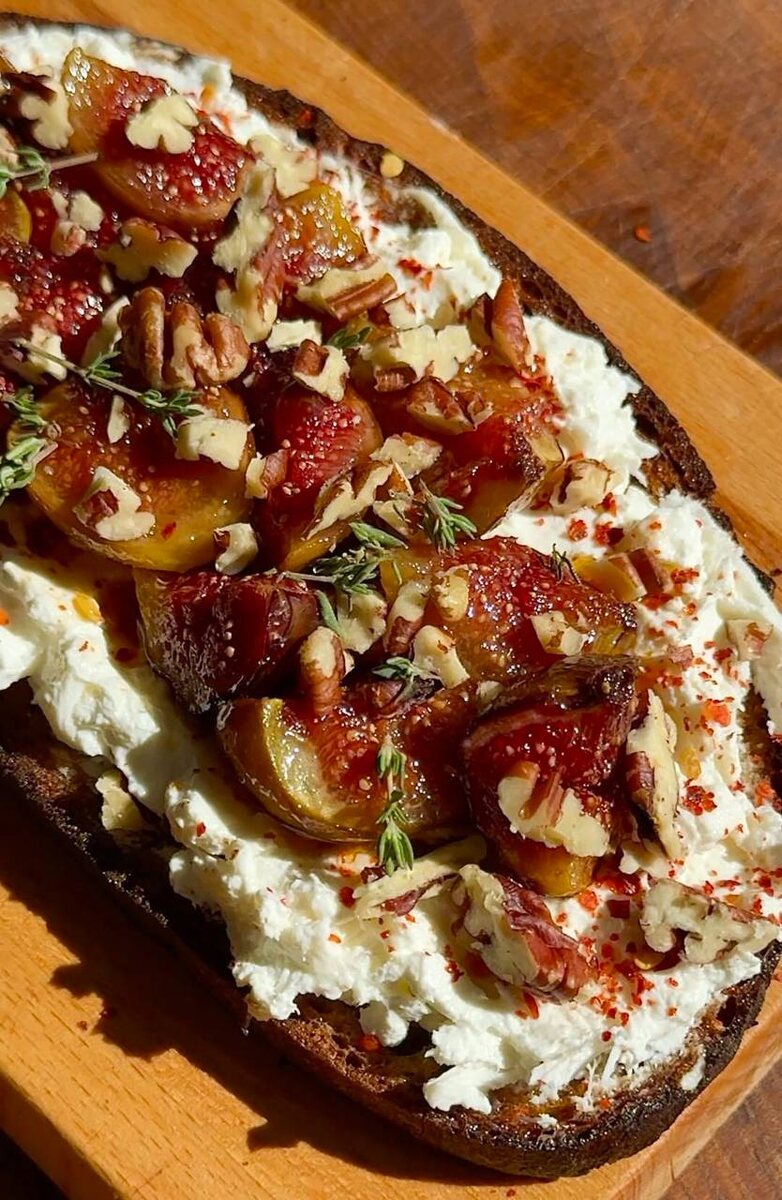 Вот рецепт того самого сочетания, ради которого сервируют завтрак, даже если не ждут гостей: карамелизированный инжир и сливочная буррата на хрустящем тосте Ингредиенты: • 4 ломтика хлеба • 4–5 спелых инжира • 1 шар бурраты • 2 ст. л. мёда • 1 ст. л. сливочного масла • щепотка соли • немного тимьяна или розмарина • оливковое масло • грецкие орехи или пекан Как приготовить: 1. Разогреть духовку до 200 °C. Разрезать инжир на четвертинки, выложить на противень, разложить кусочки масла, посыпать сахаром и солью, добавить тимьян. 2. Запекать 20 минут, сохранить сок с противня. 3. Поджарить хлеб до хруста. Выложить буррату, сверху запечённый инжир, полить соком, посыпать орехами, добавить травы и оливковое масло. Подавайте сразу, пока тёплое и ароматное