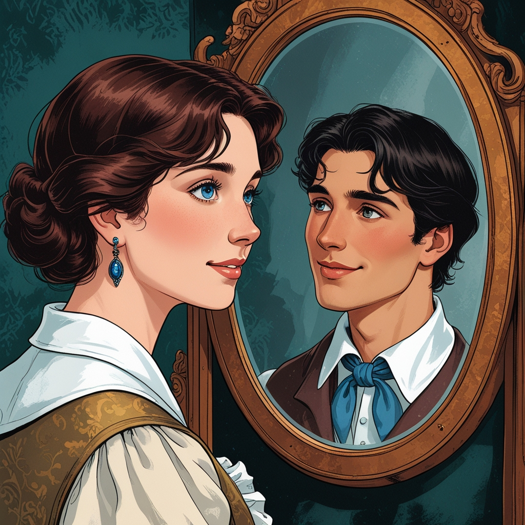 Но он, казалось, уже не слышал ее. Его образ в зеркале померк, стал размытым, неясным, а затем медленно растворился, сменившись обычным, пустым отражением ее комнаты с плачущей девушкой в старой шали, сидящей перед темным, безжизненным стеклом.