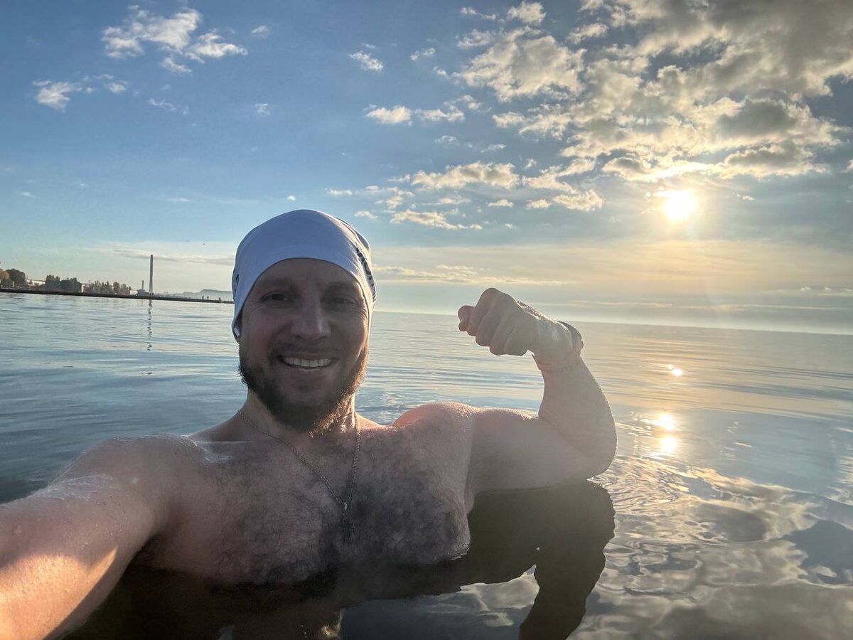 🏃♂️💦 Воскресный бег с купанием — как я люблю! Сегодня с погодой невероятно повезло: солнечная, безветренная! Просто идеально 🫶 🌡️ На улице +8, вода около +10. Поначалу кажется ледяной, но тело быстро привыкает, и уже можно устроить короткий заплыв. Главное — не злоупотреблять! Мои личные правила безопасности и комфорта: 1. Слушайте тело! Как только почувствовали сильный жар и тепло, находясь в воде — немедленно выходите и переодевайтесь! Это сработала защитная функция организма, но она не будет длиться вечно. 2. Легкость переодевания. Обязательно берите с собой свободную одежду (без сложных молний и застёжек). На холоде моторика рук может подвести, а так вы спокойно и быстро оденетесь. 3. Тепло ногам. Большие полотенца и обязательно банные тапочки/шлепанцы! Через ступни ног идет большая потеря тепла. 4. Без головы. На своем личном опыте понял: мочить голову не обязательно, иначе потом мучают головные боли. Берегите себя! Всем классного завершения выходных!