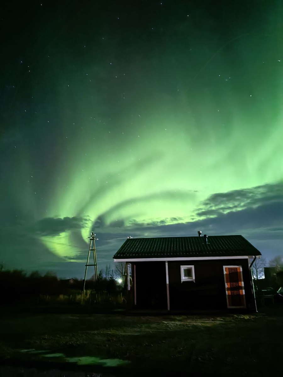 Ну вот оно, наконец, свершилось! Снова! Я так мечтала, чтобы в эту поездку мы смогли увидеть северное сияние, и так корила себя, что позавчера поленилась ночью на него просыпаться, как оно само пришло снова. Нежданно-негаданно, как самый щедрый подарок. Восторг! Мы выбежали из дома, наспех накинув на плечи первые попавшиеся куртки. Воздух в Ловозере был колючим и промозглым, таким густым, что его, казалось, можно было пить глотками. Под ногами хрустели замёрзшие камушки и листья в инее, а над головой простирался бархатный купол ночи, усыпанный бриллиантами звёзд, таких ярких и близких, что руку протяни и коснёшься их. Сначала оно было просто бледной, едва заметной дымкой где-то над домиками, похожей на забытое облачко. Я уже хотела было разочарованно вздохнуть, как вдруг оно ожило и зашевелилось. Из глубины неба начал проступать лёгкий, фантастический свет. Он струился, как шёлк, переливаясь нежно-зелёными тонами, местами цветом утреннего морского прибоя и молодой весенней листвы. Ко