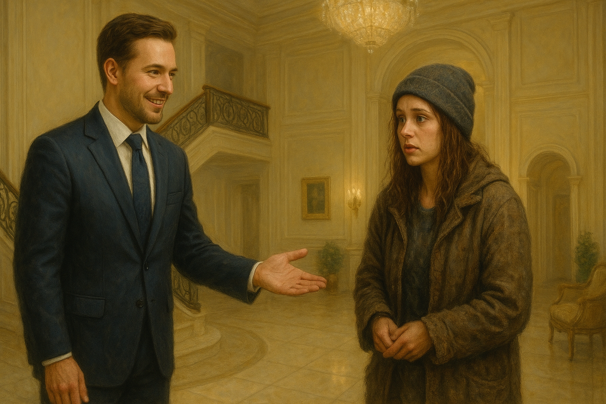 Когда девушка вернулась в особняк в последний раз перед окончанием месяца, она уже не была той растерянной бродяжкой. В её глазах светилась уверенность, которой раньше не было. Миллионер, заметив это, впервые задумался о том, что богатство не восполняет пустоту внутри человека.