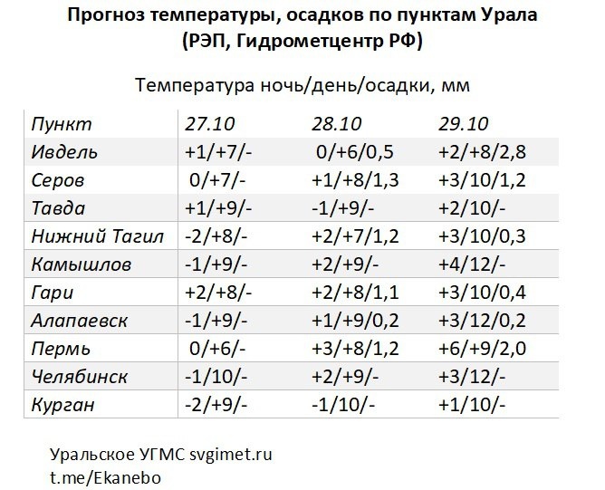 Ноябрь вернет на Урал ядреную осень – резко похолодает, зачастят дожди и снегопады, передает корреспондент Агентства новостей «Доступ». Синоптики говорят, что 27-29 октября антициклон будет двигаться на восток по северу Казахстана. Атмосферное давление будет понижаться, что облегчит атмосферным фронтам движение с юга Европейской территории России вдоль Волги и Камы на север Свердловской области. «Теплый фронт с небольшими осадками пройдет через Свердловскую область 28 октября, принесет порцию тепла, 29 октября днем плюс 7-12. Движение холодного фронта осложнится образованием на нем циклона, 30 октября на Урале осадков будет больше, на севере они будут переходить в снег. К началу ноября повсеместно похолодает», – прогнозируют специалисты Уральского УГМС. В Челябинской области в понедельник, 27 октября, будет солнечно, осадки исключены, ночью от минус 3 до плюс 2, днем плюс 10-15. Примерно такая же погода ожидается и во вторник: ночью от минус 1 до плюс 4, а после полудня воздух прогре