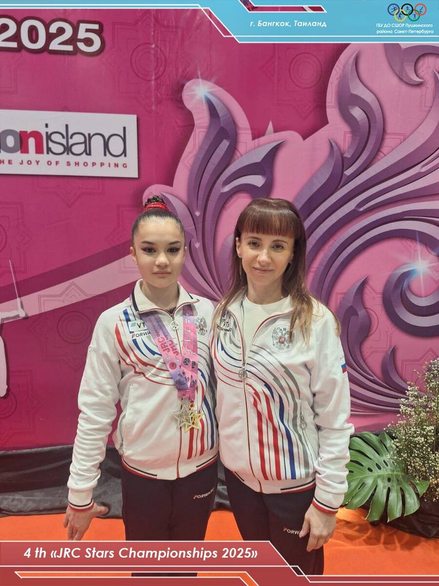 🔝НАШИ ПОБЕДЫ🏆 ⚡Каюмова Милана стала победителем и призером международных соревнований «JRC Stars Championships 2025» в Таиланде, завоевав две золотые и две серебряные награды. 🔥 🥇1 место - в командных соревнованиях в составе сборной России 🥈2 место - в личном многоборье 🥇1 место - в упражнениях на разновысоких брусьях 🥈2 место - в опорном прыжке 🤸♀🤸♂В четвертом международном чемпионате «JRC Stars Championships 2025» приняли участие 10 стран и 54 гимнастических клуба. Россию на турнире представляла команда из 20 спортсменов. 👏От всей души поздравляем наших невероятно талантливых гимнастку Милану Каюмову и тренера-преподавателя Людмилу Геннадьевну Манько с высокими достижениями! 💐 ✨Мы вами гордимся и желаем дальнейших успехов!✨ #спортивнаягимнастика #ГБУДОСШОРПушкинскогорайонаСанктПетербурга #МыСпортивныйПетербург