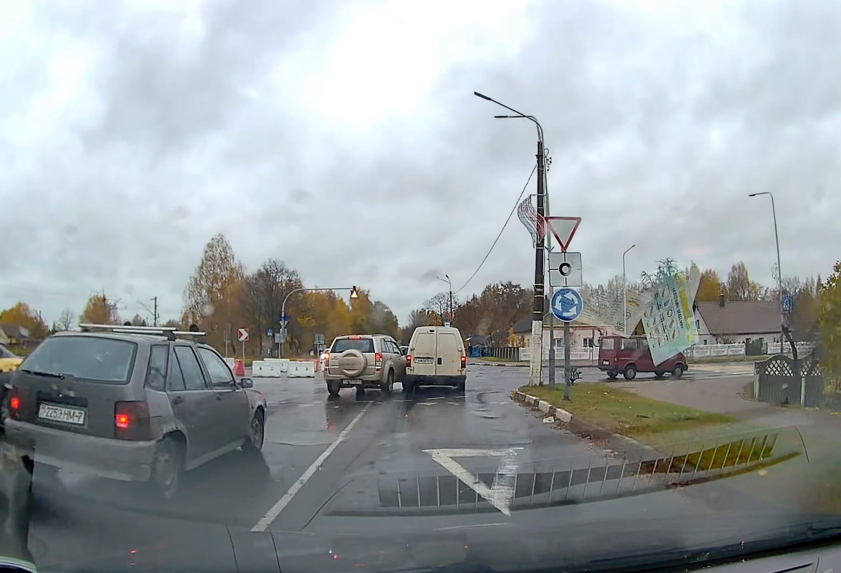 На круговом в Марьиной Горке не поделили дорогу Lada и Mitsubishi