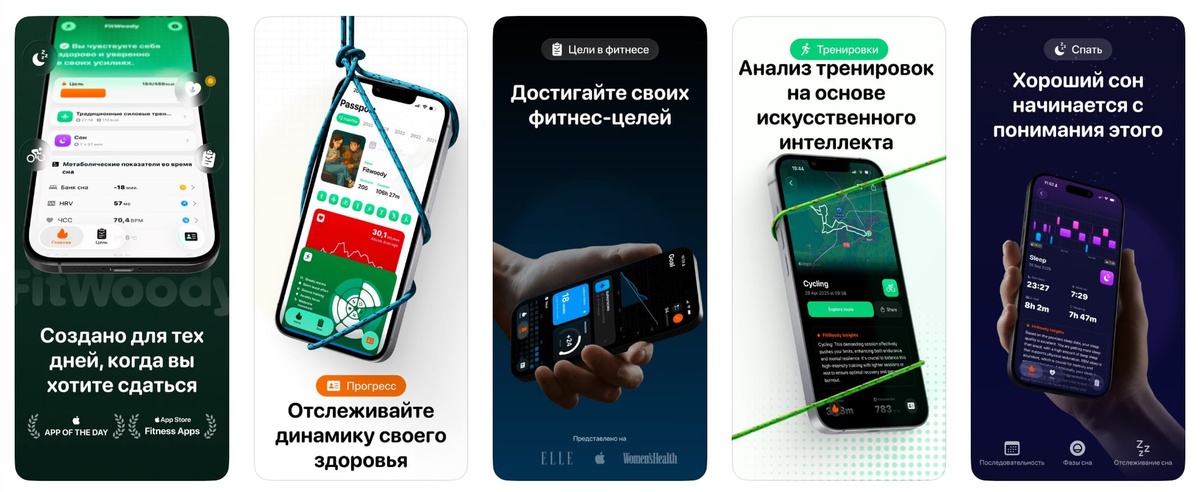 Главная фишка приложения FitWoody — адаптивный подход к тренировкам. Вместо фиксированных целей, к которым нужно стремиться через силу, программа анализирует данные из приложения Apple Health: качество сна, пульс и общий уровень энергии. На основе этой информации FitWoody корректирует ежедневные задачи, чтобы они соответствовали вашему текущему состоянию. Спали плохо? Приложение не будет требовать от вас героических подвигов в спортзале. Правда, для работы понадобятся умные часы Apple Watch или другой фитнес-трекер, синхронизирующийся с системой здоровья Apple.
