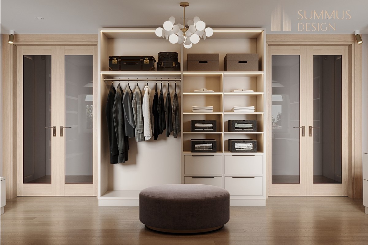 Гардеробная в частном доме — это не просто место для хранения одежды, а настоящий оазис порядка и уюта