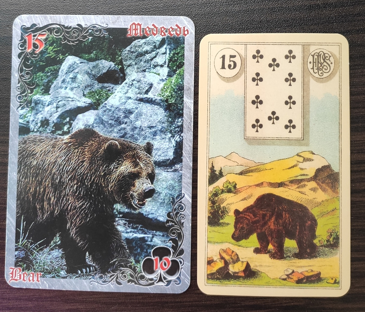 Но! не следует забывать, что медведь - это не плюшевый мишка, а зверь и весьма и весьма серьезный. Поэтому в природе он выглядит именно так как изображён на карте - грозным. Он силён физически, поэтому не уступит своего и готов бороться до конца.