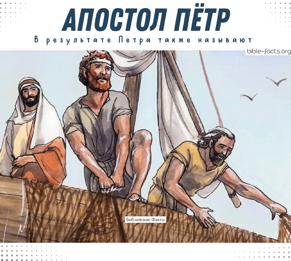 Пётр известен в Библии под несколькими именами. Первоначально он назывался Симон. Иисус же, увидев в глубинах его сердца духовную крепость, дал ему новое имя — Кифа (или Кефа, что в переводе с арамейского означает «камень», «скала»). В результате Петра также называют: