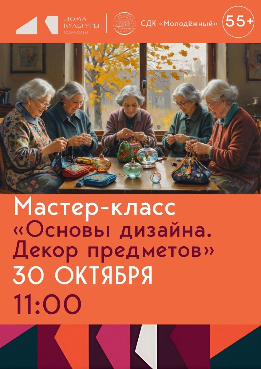 ✨ Мастер-класс «Основы дизайна. Декор предметов» 💖Участники творческой встречи смогут проявить свои способности, окунуться в творчество, порадовать себя красотой и хорошим настроением. 👡Просьба принести с собой сменную обувь. 🚫 Возраст: 55+ 📆 30.10.2025 🕒 11:00 🏢 СДК «Молодежный» 📍 г.о. Подольск, пос. Молодёжный, д.30 💰 Вход свободный❗️ ⭐Поддержать канал голосом 💰 Вакансия - курьер в Подольске ✅ Мероприятия Подольск https://dzen.ru/id/66ed500f7b5671493eca3fd6 http://vk.com/podolsk_events http://dzen.ru/podolsk_events