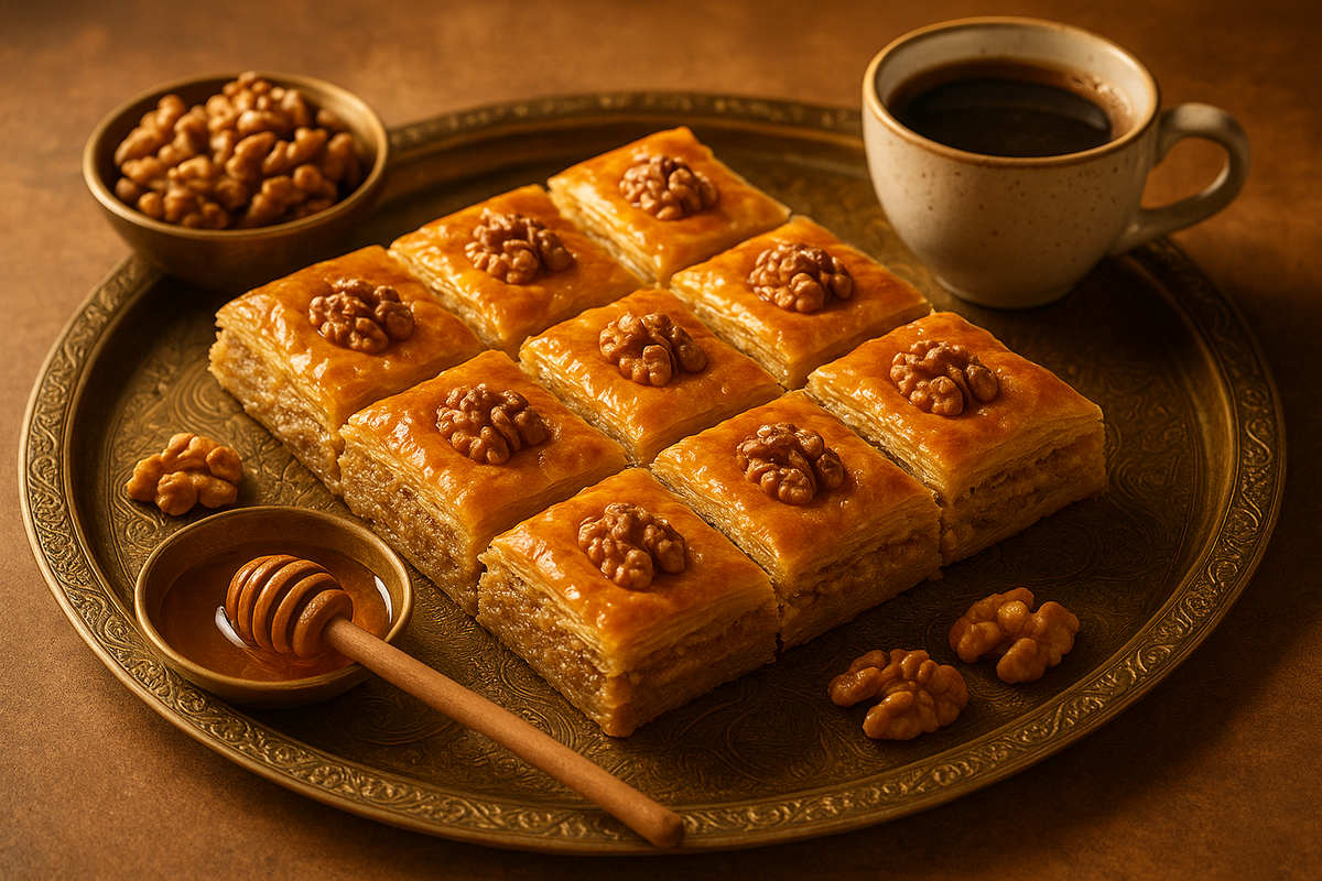 Есть десерты, которые не просто радуют вкус — они рассказывают историю. Историю шелковых путей 🐪, ароматных базаров 🌸, пряных специй и бесконечных бесед за чашкой густого кофе ☕. Одним из таких блюд по праву считается пахлава — символ сладкой роскоши Востока, который удивительным образом покорил весь мир 🌍. Сегодня пахлаву готовят в Турции 🇹🇷, Азербайджане 🇦🇿, Иране 🇮🇷, Армении 🇦🇲, Греции 🇬🇷 и даже в Европе. Каждая культура добавляет в неё что-то своё: орехи 🌰, мёд 🍯, цитрусовые ноты 🍋 и аромат розовой воды 🌹. Но в основе пахлавы — идея совершенства: много слоёв, много вкуса, много удовольствия. Когда-то пахлаву готовили только для султанов 👑. Это был символ богатства, праздника и власти. На её приготовление уходили часы, а иногда и сутки — тончайшее тесто растягивали до прозрачности, прослаивали орехами, поливали ароматным сиропом и посыпали специями, способными свести с ума любого гурмана. Сегодня всё проще — пахлаву можно приготовить и дома 🏡. Главное — терпение,