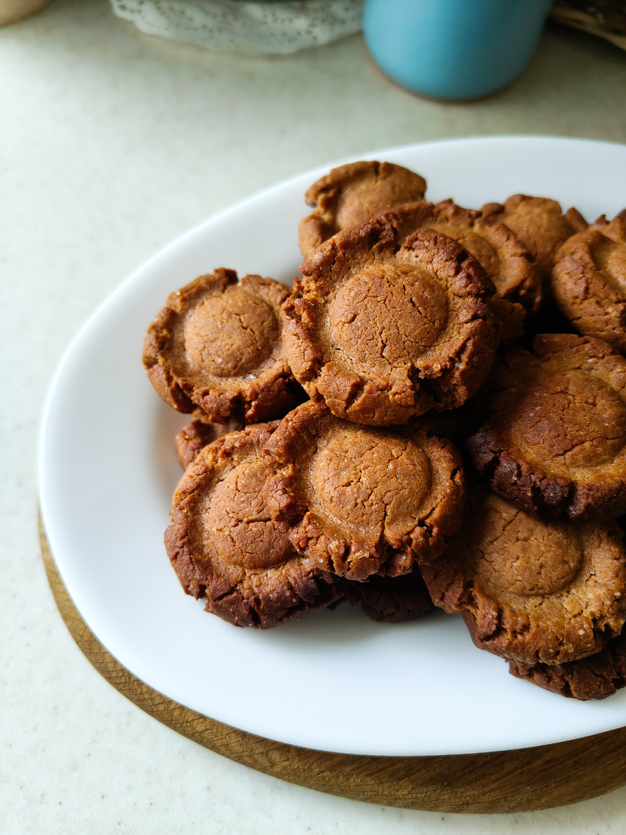 Восхитительно рассыпчатое, ароматное, орехово-сливочное печенье на основе арахисовой пасты. 1. В емкости соединяем размягченное или даже растопленное сливочное масло с сахаром, солью и ванилином. 2. Добавляем арахисову пасту. 3. Туда же разбиваем 2 яйца, тщательно перемешиваем. 4. Всыпаем муку, смешанную с разрыхлителем. Замешиваем тесто. Тесто для печенья на арахисовой пасте абсолютно не липкое, за счёт высокого содержания жира. С ним легко и приятно работать. 5. С помощью чайной ложки отщипываем тесто и скатываем шарик. Таких шариков у меня поместилось 49 штук на противень. Остатки теста отдаем детям, пусть развлекаются) 6. С помощью любой пробочки делаем отпечатки, расплющивая шарики. 7. Выпекаем 10-15 минут в духовке, разогретой до 180°С. Ориентируйтесь на свою печку. Поставили таймер на 10 минут, открыли - проверили. Не зарумянились? Значит ждем ещё 3-5 минут. На канале есть ещё один не менее вкусный рецепт арахисового печенья. А также печенье "косички" на сметане. И очаровательны
