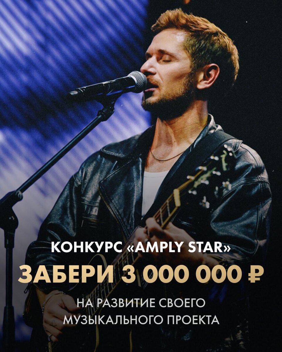 Успей подать заявку на масштабный бесплатный конкурс артистов «AMPLY STAR» от компании «Amply Music» и лейбла «Первое Музыкальное» Они ищут настоящих будущих звезд — с талантом, мечтой и харизмой. Тех, кто готов заявить о себе на всю страну! Что можно выиграть на «AMPLY STAR»? 🏆Гран-при — контракт на сотрудничество с профессиональной командой «Amply Music» над твоим проектом с бюджетом до 3 000 000 ₽. Также призы за 1–3 место — контракты, бюджеты до 300 000 ₽ и обучение в «Amply School». Первый этап приёма заявок продлён до 1 ноября. Возраст участников — 15–35 лет. ЗАПОЛНИТЬ ЗАЯВКУ ТУТ