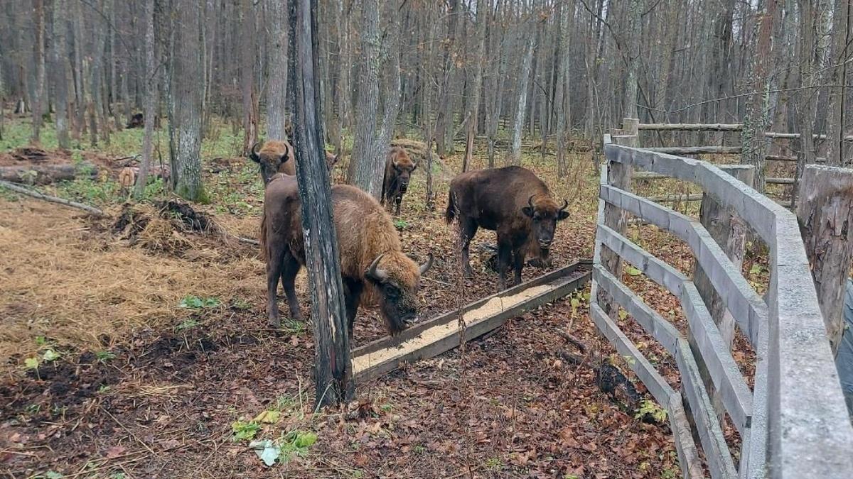 В Мордовии зубры-новосёлы кушают вкусняшки и обживаются