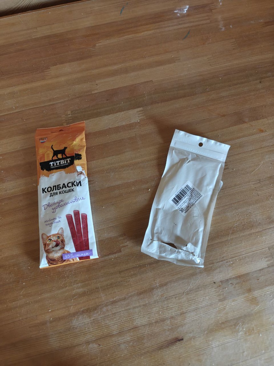 У котов была веселая ночь. Сначала они достали палочки, а потом колбаски