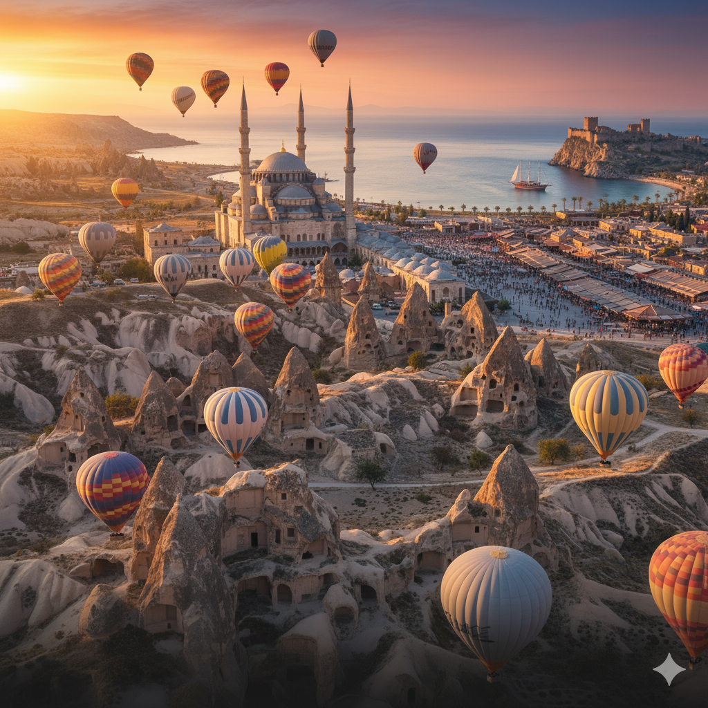 Представьте страну, где вы можете завтракать на берегу Эгейского моря, обедать в тени древних римских руин, а ужинать — в городе, разрезанном пополам проливом Босфор. Где минареты соседствуют с небоскрёбами, а в одном и том же базаре продают и ковры ручной работы, и iPhone. Это не фантастика — это Турция. Турция — одна из немногих стран в мире, расположенных сразу на двух континентах: Европе и Азии. Стамбул — единственный город планеты, официально разделённый между двумя частями света. И это не просто географическая особенность — это философия. Здесь гармонично переплетаются традиции и модерн, ислам и светскость, древность и будущее. Кстати, знали ли вы, что именно в Турции находится Гёбекли-Тепе — древнейшее храмовое сооружение в мире, возраст которого — 12 000 лет? Это на 6 000 лет старше египетских пирамид! И да, оно было построено до появления земледелия. Как? Почему? Наука до сих пор в шоке. Турецкий кофе — это не напиток, это ритуал. Его варят в джезве, пьют медленно, а гущу пото
