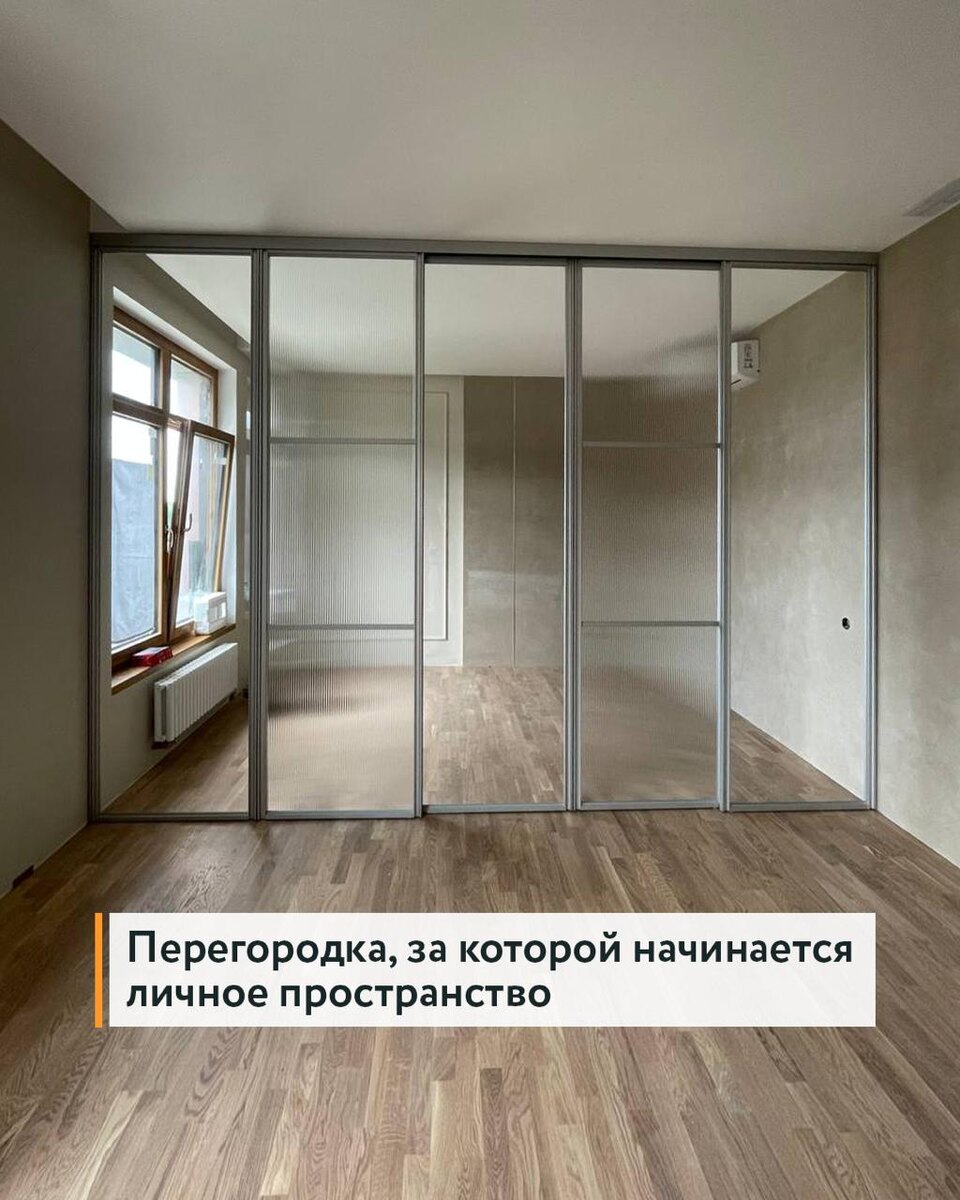Для этого заказа нужно было отделить часть комнаты, чтобы зонировать будущий кабинет хозяина и кухню-гостиную. 🔸 Мы спроектировали межкомнатную перегородку из 5 дверей. Сделали: - 3 стационарные; - 2 подвесные (без нижнего рельса), которые плавно и тихо разъезжаются. 🔸 Подобрали сочетания гофрированного и обычного стекла: - со стороны гостиной двери смотрятся легкими и стильными; - со стороны кабинета почти невидимы. 🔸 В итоге двери открываются удобно с обеих сторон: - в гостиной ручкой служит профиль; - со стороны кабинета можно открыть двери без труда с помощью врезных ручек. Хотите так же? Напишите нам. Подберем перегородку, которая впишется в ваш интерьер. •Консультируем здесь @Amatidru •Или по тел.: +79219170608 •3 салона СПб, монтажные бригады СПб и Мск •Отправляем в другие города •Можно купить в рассрочку