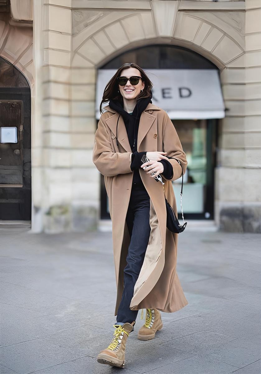 Игнорирование пропорций. Длинное пальто + короткие ботильоны без видимого промежутка выглядят странно. Либо высокие сапоги, либо брюки достаточной длины.