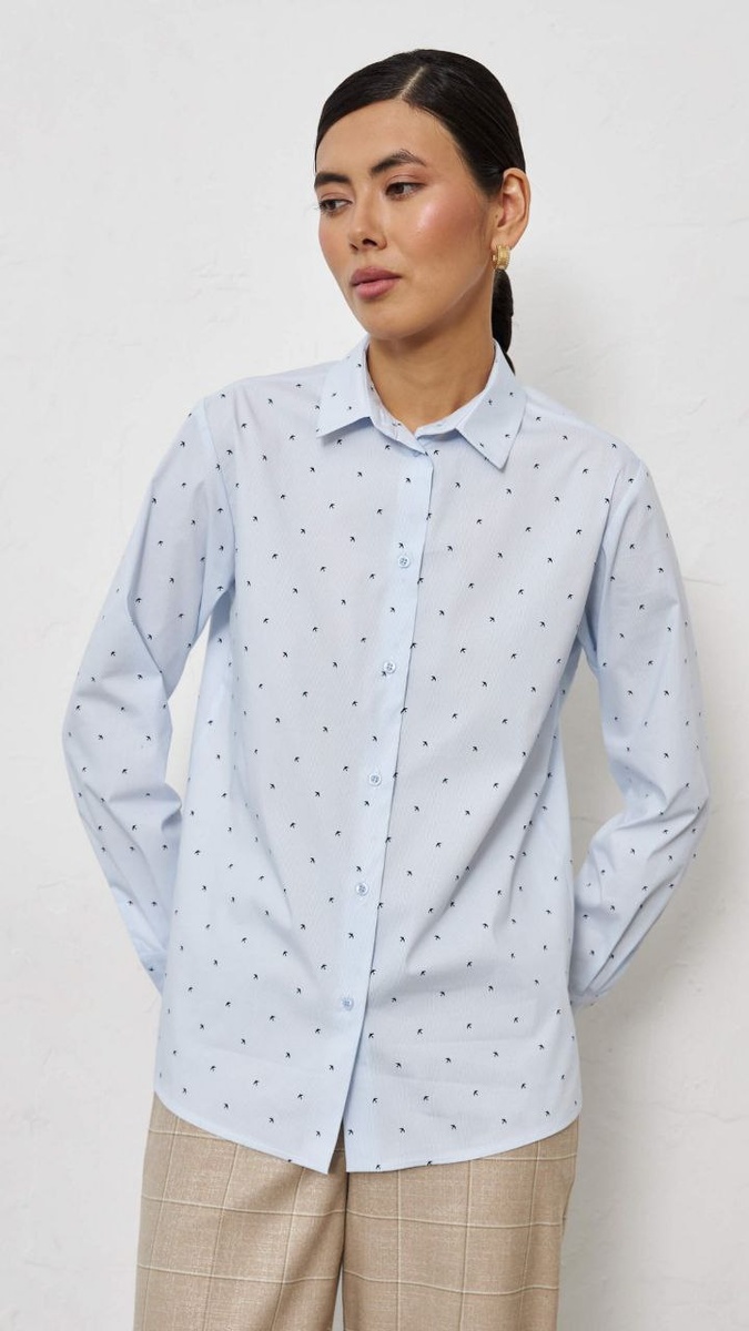 Блуза с жизнерадостным принтом «ласточки» — прекрасный способ поднять себе настроение.
