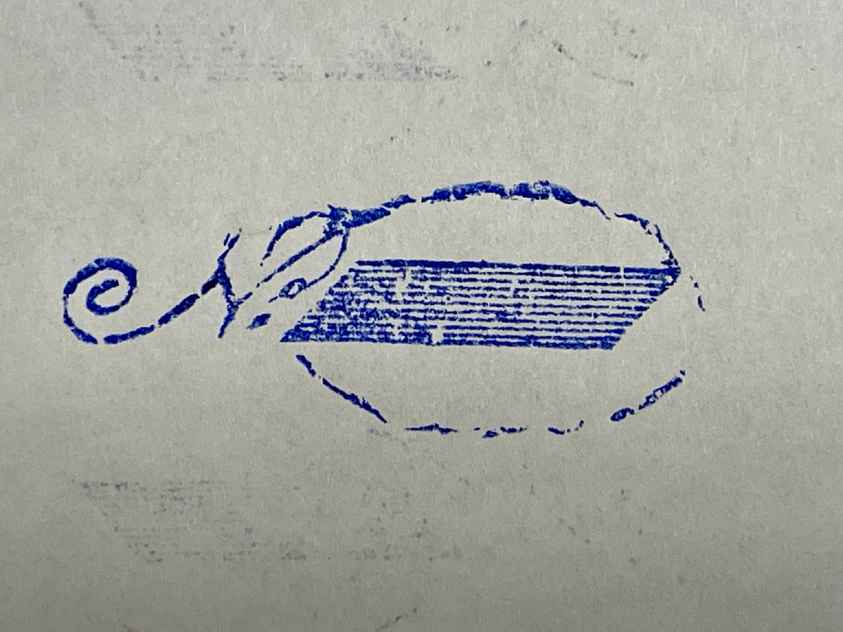 Определить по фото, что именно изображено на щитке, не получилось. Помог чернильный оттиск: стала явной буква N c характерным значком - кружком и штрихом. Символ номера. То есть печать для нумерации.