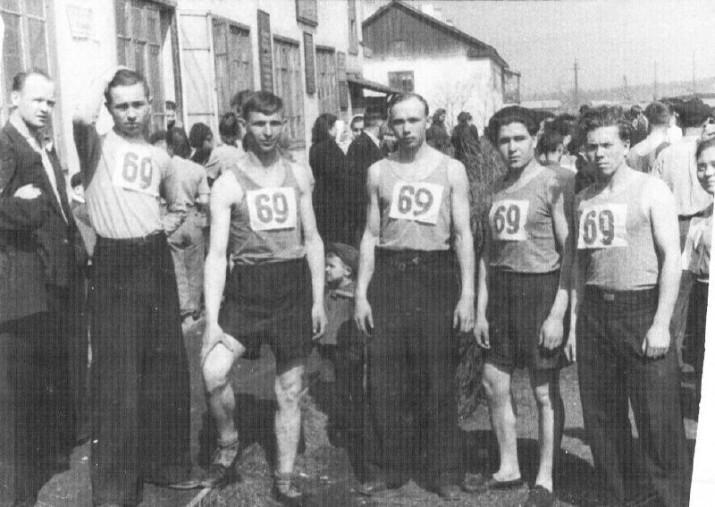 Свердловск. Завод им. Калинина, 1953 год. Участники перед стартом легкоатлетической эстафеты. Почему у всех одинаковая табличка с цифрой «69»?