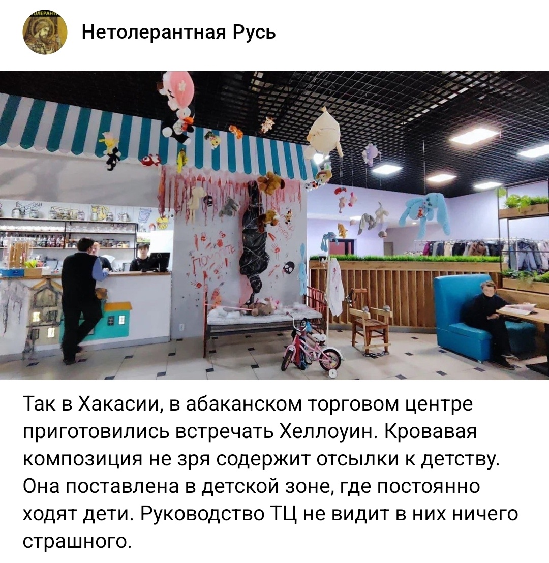 Так или иначе подобную атрибутику встречал в разных местах в своем городе. Меня всегда удивляло как современные русские люди сочетают, казалось бы не сочетаемые обычаи. На Пасху вся страна несёт освящать в храм куличи и крашенные яйца, а в канун хеллоуин, праздника посвященного всякого разного бесовским сущностям, люди наполняет их символикой места своего обитания. Как говорится и вашим, и нашим. Пытаемся сделать поклон и Богу и мамоне.