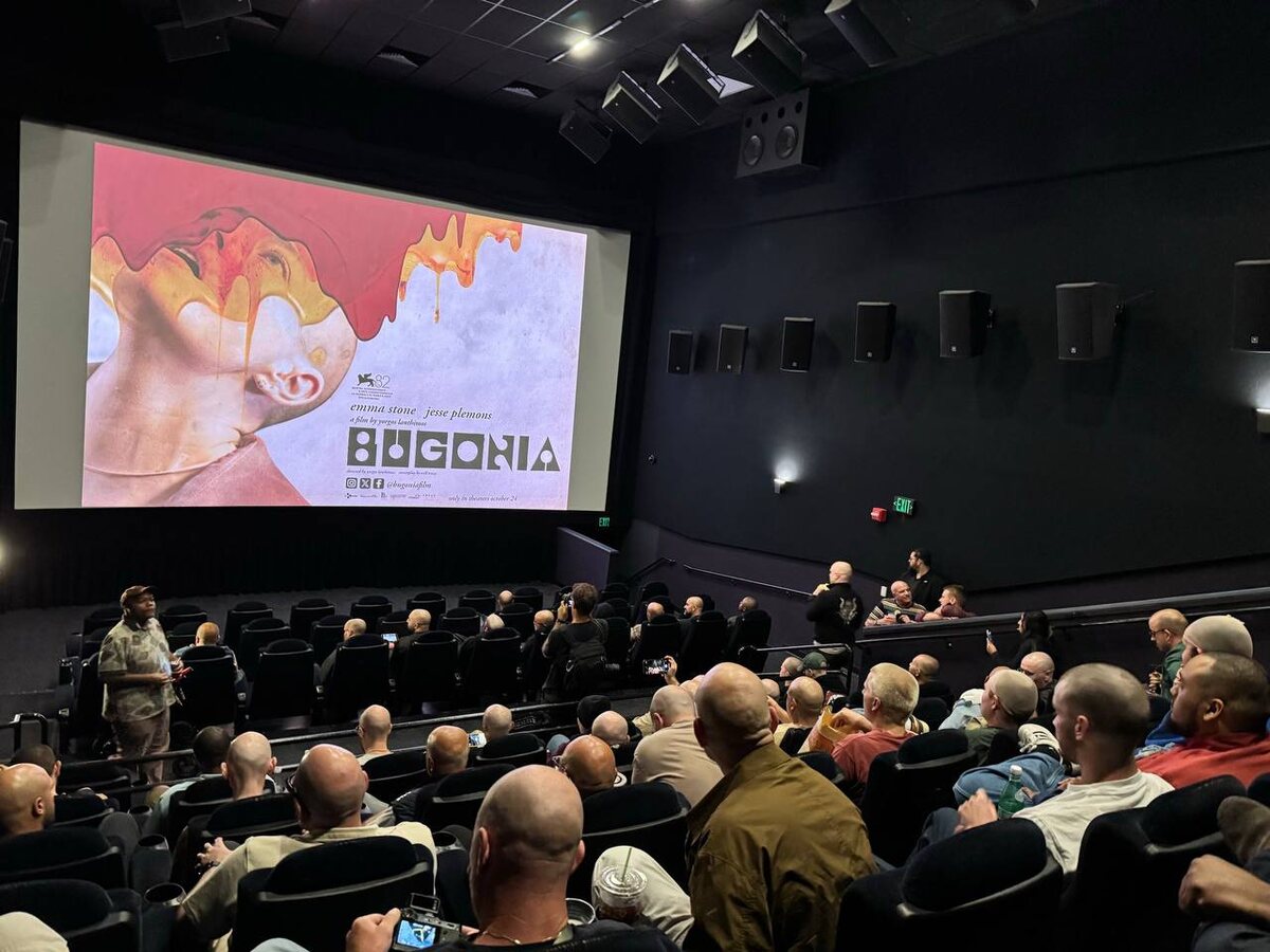 В Лос-Анджелесе прошёл спецпоказ фильма «Бугония». Чтобы попасть на сеанс, нужно было… побрить голову (или изначально быть лысым счастливчиком). Однако некоторые зрители решили схитрить и прийти в кинотеатр в специальных париках. Наверное, это и есть пришельцы, которых искали главные герои картины…