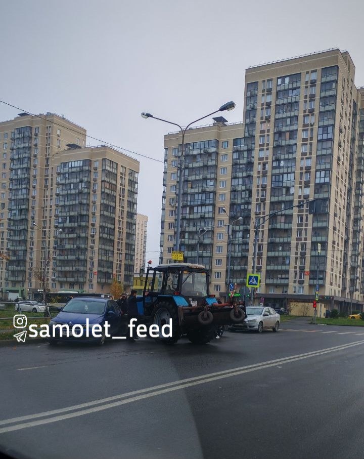 На улице Вертолетной трактор влетел в припаркованный автомобиль.