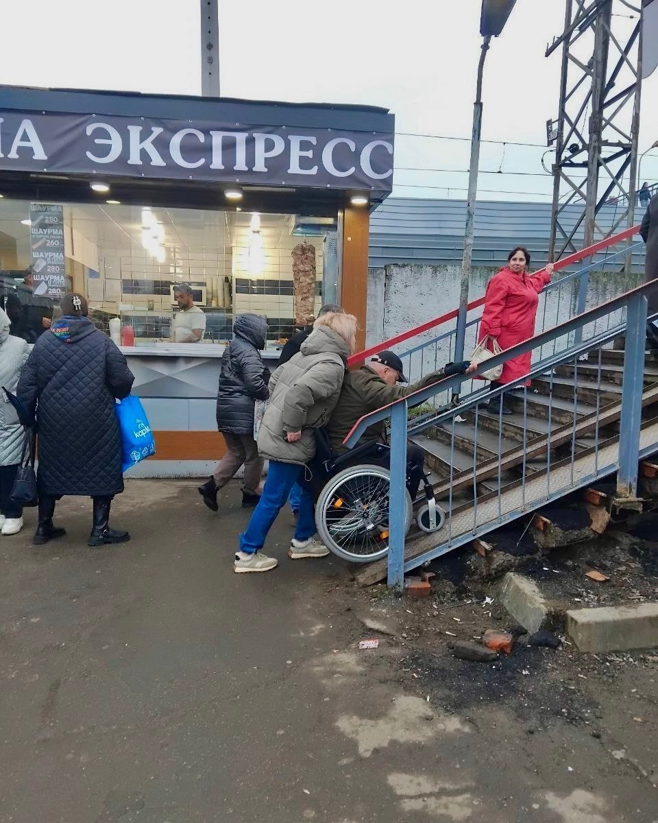 Коротко о том, как приходится жить маломобильным гражданам в Голицыно 🤯 Надземный переход у станции «Голицыно», жизненно важный для соединения частей города, годами пребывает в аварийном состоянии и не приспособлен для комфортного передвижения маломобильных граждан. Источник: Открыть